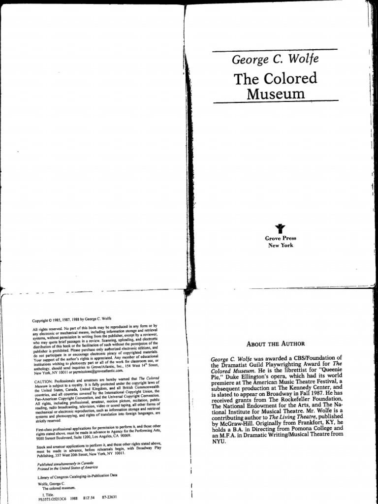 Wolfe that highlights the identify struggles of African Americans and the issues that define their lives in a contemporary world. Web Up to 3 cash back Download as PDF TXT or read online from Scribd Flag for inappropriate content of 2 THE COLORED MUSEUM by George C. Web AVE4FEKQXDBI eBook The Colored Museum The Colored Museum Filesize.